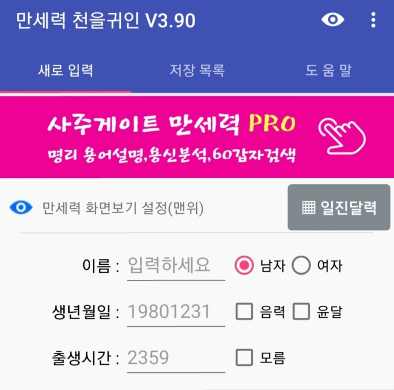 1. 만세력 앱에서 나의 생년월일을 입력한다.