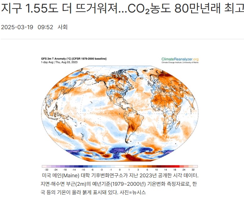 "지난해 전 지구 평균 온도는 산업화 이전 대비 1.55도 상승했다"라고